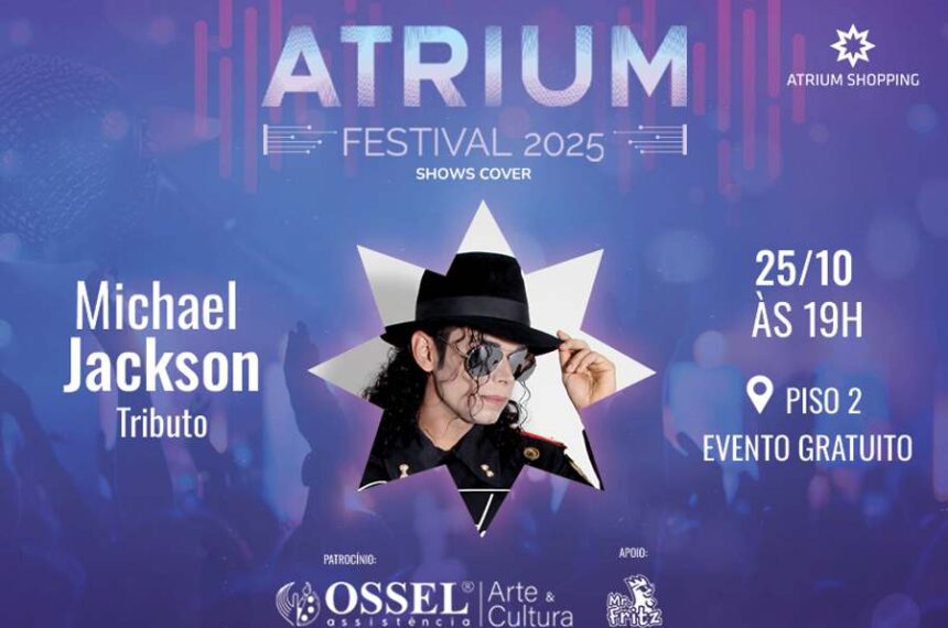 O Atrium Shopping se transforma em um palco de pura nostalgia. Neste sábado (25), o público terá a oportunidade única de reviver os sucessos do eterno Rei do Pop em um show tributo gratuito, estrelado por Christian Joseph.