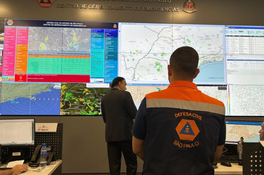 A Defesa Civil mantém operação 24 horas para atualizar o alerta de chuvas em SP em tempo real. A tecnologia do Painel de Inteligência “SP Sempre Alerta” integra dados meteorológicos, reduzindo em 80% o tempo de tomada de decisão para a emissão de avisos à população.