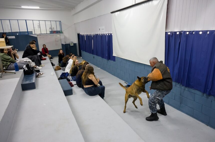 A visita, que visa mostrar as diferentes aplicações da espécie canina, faz parte da grade curricular e é frequentemente organizada pela professora Paula Duarte.