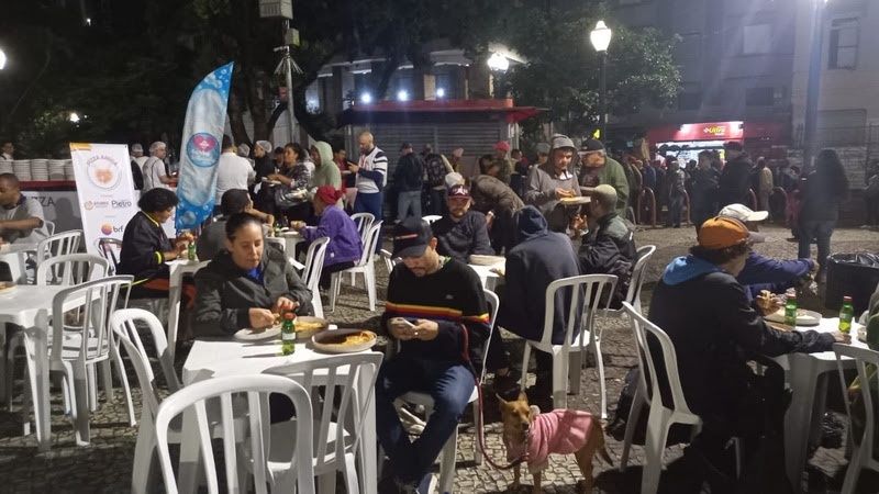 A segunda edição do evento Pizza Amiga promove inclusão e solidariedade por meio da partilha de pizzas e serviços de apoio à população no Centro de São Paulo
