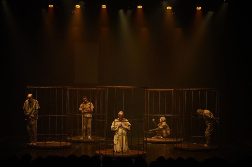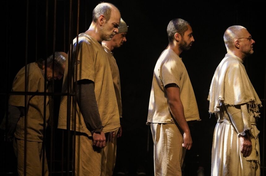 Segundo o diretor Hugo Coelho, a montagem é uma “versão contemporânea” do texto. “O espetáculo é um grito contra a barbárie, contra o fascismo que usa a violência como instrumento de ação política”, afirma. Na concepção cênica, os personagens aparecem isolados, confinados em gaiolas, aludindo ao encarceramento e à perda da dignidade.