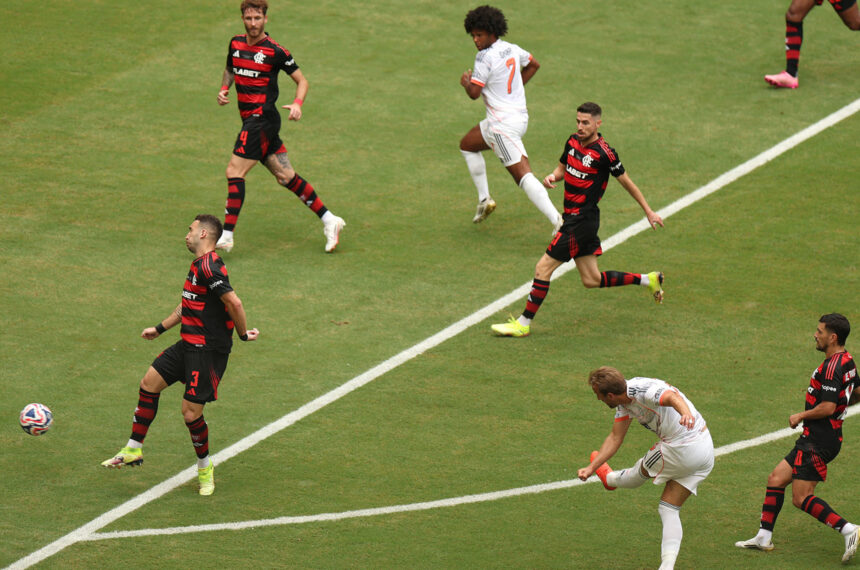 E aos 27 veio o banho de água fria, quando Luiz Araújo tentou sair fintando na defensa do Flamengo, teve a bola roubada por Laimer, que serviu Kimmich, que deu uma bela assistência para Harry Kane na meia-lua, que só teve o trabalho de finalizar e dar números finais à partida.