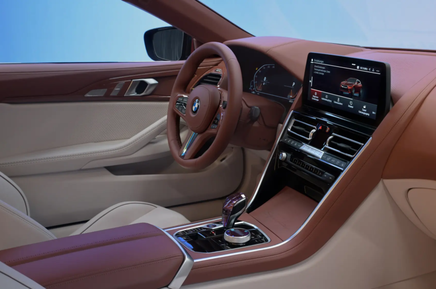 O conceito de cores e materiais em dois tons cria uma conexão entre o exterior e o interior. O tom marrom brilhante da pintura externa “Floating Sunstone Maroon” é transportado para o interior. Aqui, o mundo marrom “Sundown Maroon” harmoniza com o claro “Moonstone White” dos bancos. O estofamento em couro bicolor divide as áreas dinâmicas e funcionais do interior. O porta-malas também é revestido em couro e refinado com perfurações em estilo brogue.