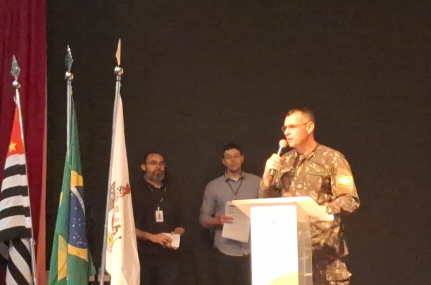 Com o Teatro Cacilda Becker, no Paço de São Bernardo, tomado por atiradores do TG (Tiro de Guerra) e familiares, na tarde deste sábado (05), o prefeito Marcelo Lima (Podemos), ao lado do subtenente Renato Moraes, do sargento Santos Oliveira, da vice-prefeita, da sargento Jessica Cormick, do vereador Julinho Fuzari, do recém-empossado comandante da GCM (Guarda Civil Municipal), Eduardo dos Santos, e de secretários, entregou o primeiro valor do ‘Bolsa Tiro de Guerra’, benefício concedido aos 100 atiradores do TG 02-078.
