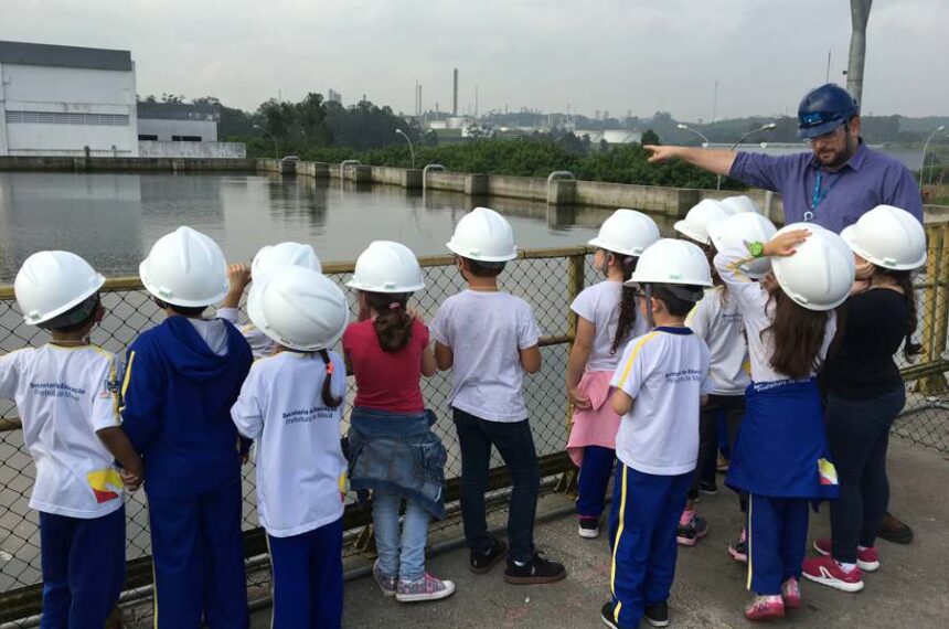 Os alunos do primeiro ano do ensino fundamental, que assistem as apresentações do teatro de fantoches, também realizam visitas pelo programa Portas Abertas da BRK na Estação de Tratamento de Esgoto (ETE) de Mauá.