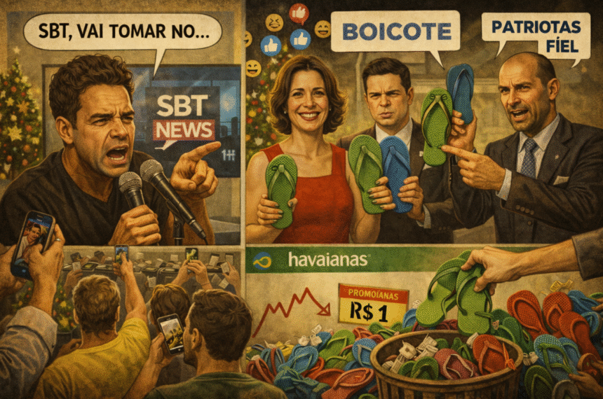 Aí você olha para os chinelos e percebe que o país conseguiu politizar até o pé, que era o último órgão ainda fora do debate. Papai Noel, me entrega um Natal em que “dois pés” seja só chinelo, não senha de guerra cultural. A Havaianas coloca Fernanda Torres na campanha, solta um “comecem 2026 com os dois pés”, e o bolsonarismo ouve como se fosse senha de cofre ideológico, dessas que exigem vídeo de repúdio e tutorial de boicote. E como o Brasil adora confundir trocadilho com atentado, a frase vira prova, a prova vira ofensa, e a ofensa vira missão patriótica de shopping.