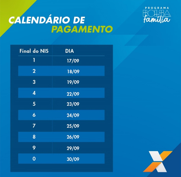 A CAIXA inicia, nesta quarta-feira (17), o pagamento do Programa Bolsa Família referente ao mês de setembro. As famílias que recebem seu benefício pelo CAIXA Tem podem movimentar os recursos pelo App. O pagamento do benefício é realizado de acordo com o final do Número de Identificação Social – NIS. Ao todo cerca de 19,2 milhões de famílias recebem o Bolsa Família.