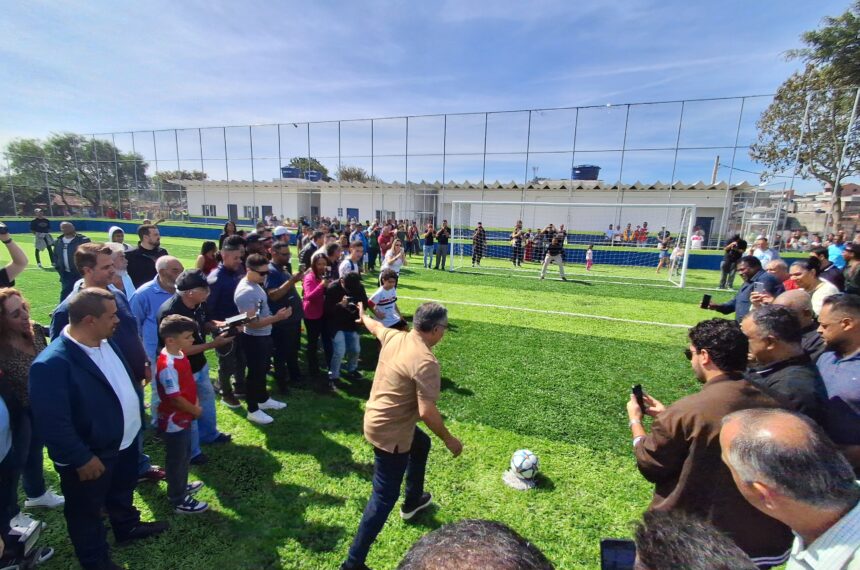 O equipamento esportivo recebeu gramado sintético, iluminação, além de outras reformas em todo o seu espaço, no bairro dos Casa, em São Bernardo do Campo