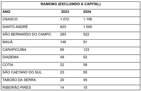 Depois da capital, Osasco é a cidade que registrou os maiores números relacionados a furto de cabos. Seis cidades do ABC também estão entre as dez com mais ocorrências.