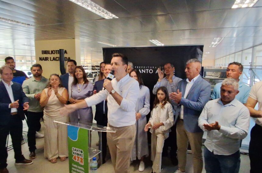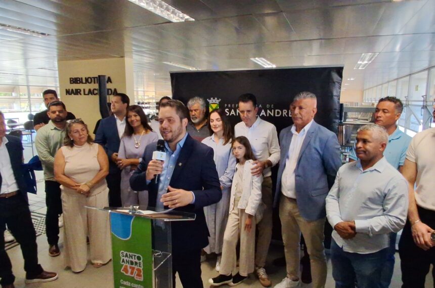 Em uma agenda agitada nesta terça-feira (08), Santo André completou 472 anos e, para celebrar a efeméride, o prefeito Gilvan Junior (PSDB) abriu as comemorações com uma homenagem a João Ramalho, que fundou a cidade em 1.553 e, na sequência, seguiu para a entrega de um dos equipamentos municipais de cultura mais importante da cidade: A BNL (Biblioteca Nair Lacerda), que está alocada no Paço Municipal, que foi completamente revitalizada e que integra o Espaço Cívico e já está à disposição dos ávidos por conhecimento.