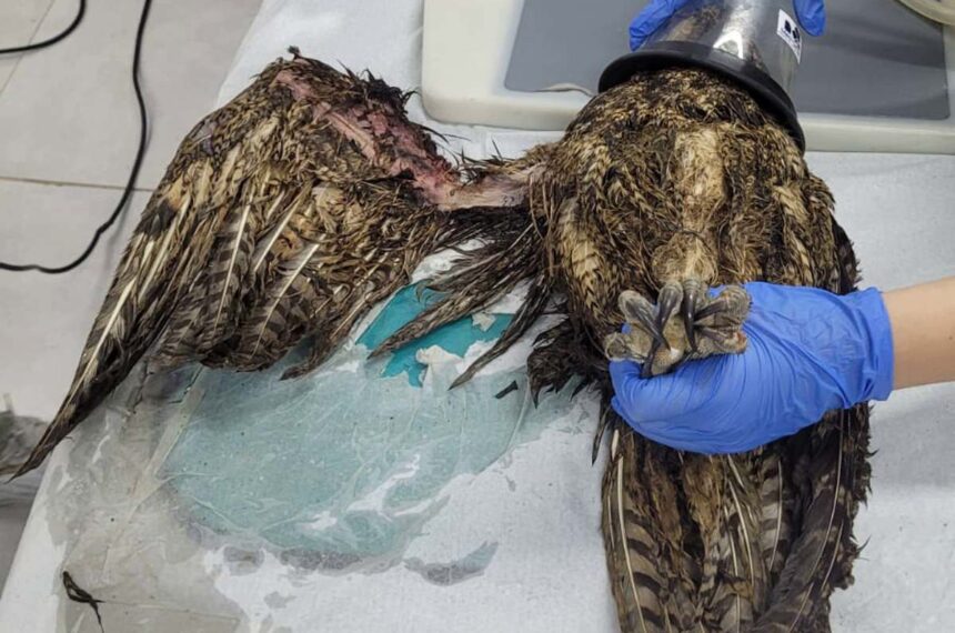 Coruja jacurutu é resgatada em Santo André após ferimento grave causado por linha de pipa