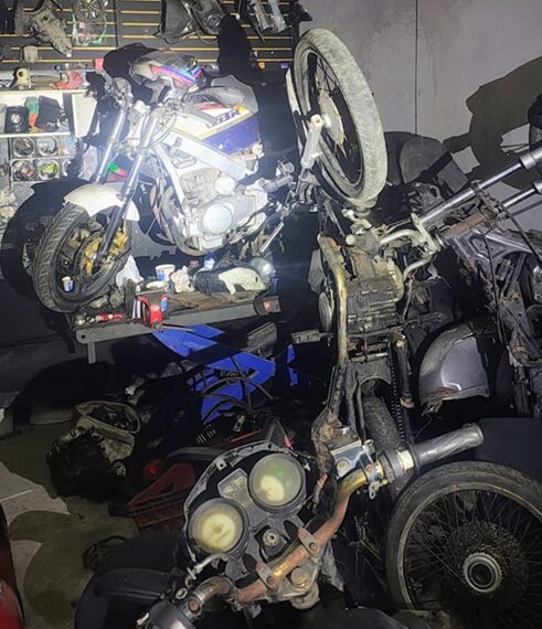 No decorrer da ação policial, dois homens foram detidos e um total de nove motocicletas, todas sem qualquer sinal identificador, além de diversas peças avulsas, foram apreendidos. As investigações iniciais indicam que os veículos e componentes recuperados tinham sido furtados do pátio da Polícia Civil.