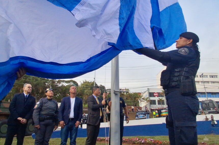 Em uma manhã fria e com o céu encoberto do feriado da Revolução Constitucionalista de 1932, celebrada neste dia 09 de julho, o prefeito Taka Yamauchi (MDB), de Diadema, promoveu dois atos em um evento, o hasteamento da bandeira oficial do município e o batismo de um blindado com o nome da cidade, com representantes do legislativo, secretários, Guardas Civis Municipais, polícias militares e civis, e oficiais do Exército Brasileiro.