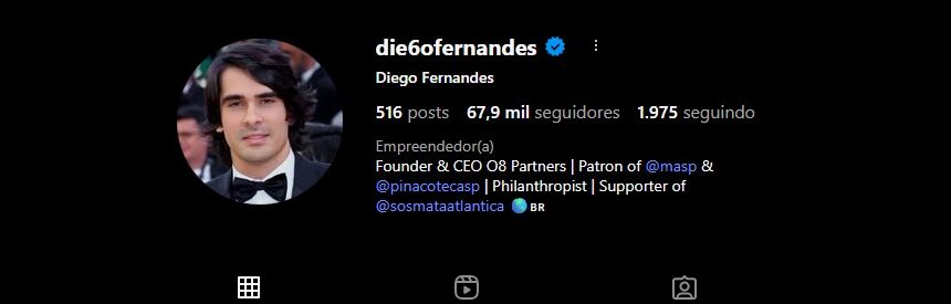 Além disso, Diego Fernandes se apresenta como um empresário engajado em melhoria de pautas como: meio-ambiente, cultura, arte e também o futebol. É um dos patronos do MASP, da Pinacoteca de São Paulo e também dedica tempo ao SOS Mata Atlântica.