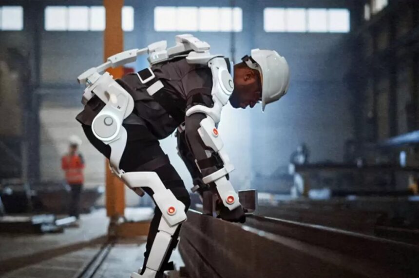 Os exoesqueletos são dispositivos vestíveis que auxiliam o corpo humano, promovendo a distribuição do peso corporal de maneira mais eficiente e aliviando a sobrecarga sobre vértebras e músculos.