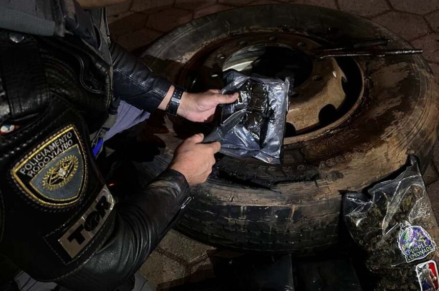 Um homem de 30 anos foi preso por tráfico de drogas na rodovia Castello Branco (SP-280), em Avaré, transportando diversas porções de drogas dentro de um dos pneus de um caminhão.
