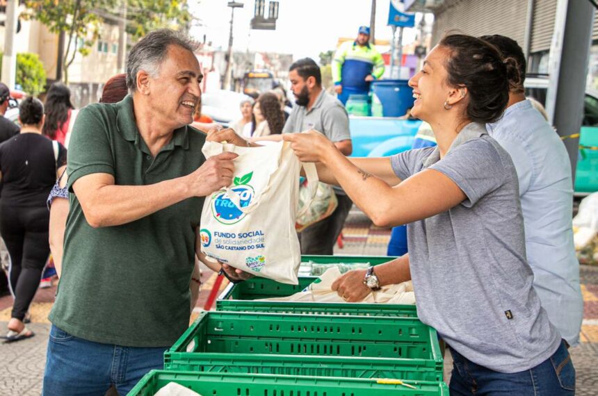 A Prefeitura de São Caetano do Sul realizou, nesta quinta-feira (4/9), a oitava edição do programa EcoTroca 2025, em frente ao Atende Fácil, no Centro. A iniciativa, promovida em parceria com o Fundo Social de Solidariedade e o Saesa (Sistema de Água, Esgoto e Saneamento Ambiental), une sustentabilidade e solidariedade ao incentivar moradores a trocarem recicláveis e óleo de cozinha usado por alimentos e barras de sabão.