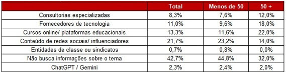 É por isso que, se os negócios menores recorrem a conteúdo online sobre como usar as IAs, as grandes tendem a buscar ajuda de fornecedores de tecnologia (18%) e de consultorias especializadas (12%) nesse processo.