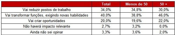 A visão geral sobre a tecnologia, no entanto, é positiva — 43% dos empresários dizem que ela trará mais oportunidades de crescimento para pequenos e médios. Mas há diferenças nos portes, com as grandes mais otimistas do que as menores.