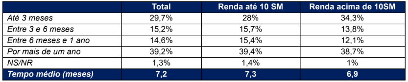 Mais do que isso, houve até uma redução no prazo de atraso das despesas que estão atrasadas (de 62,7 para 61,6 dias). Mas isso pode significar, se lido em paralelo à disparada da inadimplência, a chegada de novos lares ao grupo. Para a FecomercioSP, se a inflação seguir alta nos próximos meses, é esperado que haja uma migração para os períodos de atraso mais longos já nas pesquisas seguintes.