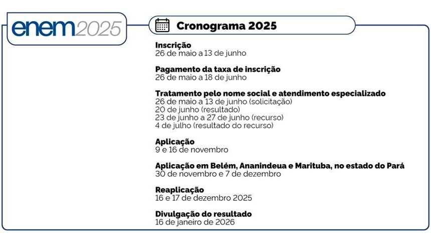 Confira o cronograma atualizado do exame: