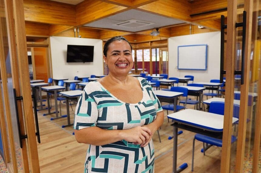 “Somos um projeto piloto de uma escola mais aberta, com mais liberdade e tudo mais claro”, explica a professora Vanice Aparecida Carvalho de Menezes, vice-diretora da instituição. Ela conta que o impacto da boa estrutura é direto no aprendizado.