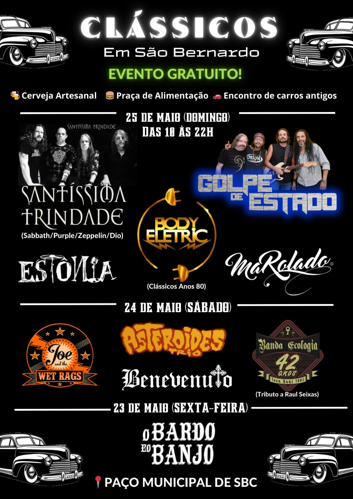 Neste final de semana terá exposição de carros antigos no Paço Municipal de São Bernardo do Campo, com muitas apresentações musicais, cervejas artesanais, praça de alimentação, artigos rock’n’roll e artesanato.
