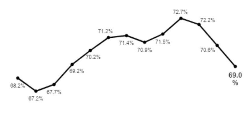 O índice de endividamento, que mede a proporção de lares com dívidas ativas, mesmo sem atraso, seguiu trajetória estável, em 69%, ligeiramente abaixo dos 70,6% de novembro, mas próximo do registrado em dezembro de 2024 (68,2%).