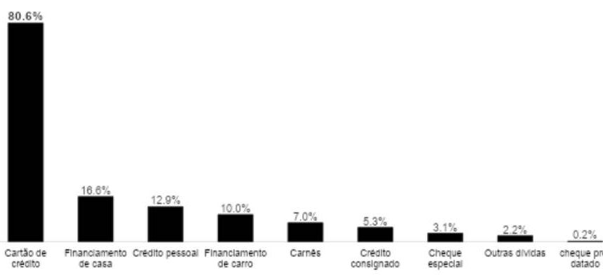 O levantamento destaca que o endividamento está fortemente ligado ao consumo, especialmente via cartão de crédito, modalidade presente em 80,6% dos casos de famílias endividadas.