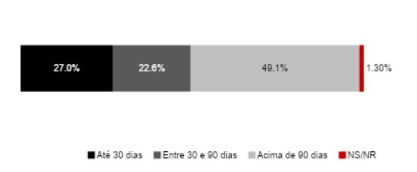 Quanto à qualidade das dívidas, o tempo médio de comprometimento permaneceu em sete meses, enquanto 32% das famílias afirmam ter dívidas com vencimento em até três meses, recorde desde 2010. Entre os endividados, o tempo médio de atraso encerrou o ano em 62,6 dias, ante 64,7 dias em 2024.