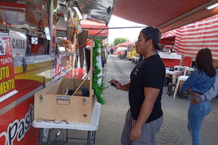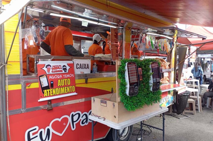 A decisão, tomada com o incentivo do filho, Antony de Alcântara, que acompanha de perto cada detalhe da operação, visava aprimorar o fluxo de atendimento e a experiência do consumidor. A tecnologia na feira transformou radicalmente o dia a dia da equipe. “Agiliza muito o atendimento, agora até conseguimos ‘respirar’ dentro do trailer. A correria diminuiu, o serviço ficou mais organizado e os clientes estão adorando”, relata Dora, reforçando o impacto positivo.