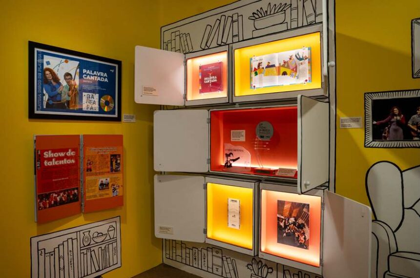 Tudo está ao alcance dos olhos das crianças – os objetos expostos, assim como os textos de parede, foram colocados em uma altura mais baixa especialmente para que elas possam usufruir melhor o conteúdo. A mostra apresenta fotografias, vídeos, instrumentos, croquis, capas e textos guardados no acervo pessoal de Sandra e de Tatit. Para visitá-la, não é mais necessário reservar ingressos, basta chegar.