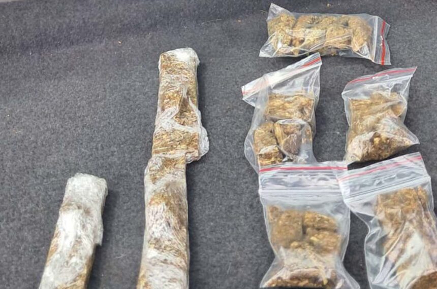 Durante a revista, os guardas localizaram uma pochete presa à cintura do indivíduo. No interior, havia oito porções de maconha embaladas individualmente, padrão característico do tráfico de drogas, segundo a corporação.