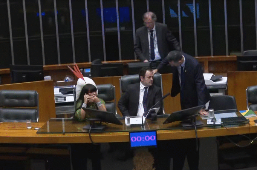 Deputado ocupou a mesa diretora e sessão foi interrompida; votação decisiva ocorre na quarta-feira.