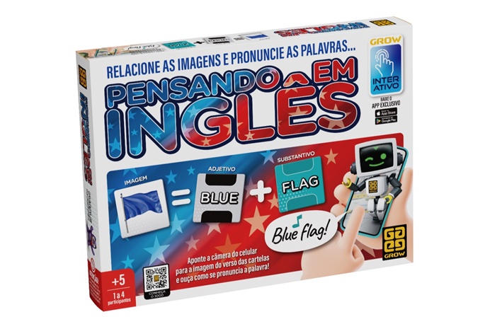 - Pensando em Inglês: Destinado a crianças a partir de 5 anos, o jogo facilita o primeiro contato com a língua inglesa de forma interativa. Os jogadores formam pares de cartas com ilustrações, substantivos e adjetivos. O grande diferencial é o aplicativo Grow Interativo, que pronuncia as palavras e ajuda na fixação da pronúncia correta, tornando o jogo uma excelente ferramenta para uso em casa ou na escola.