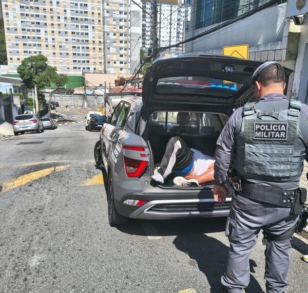 Visivelmente alterado, ele passou a ameaçar a jovem novamente, desta vez na frente dos policiais. Foi contido imediatamente. O homem resistiu à abordagem e à busca pessoal, sendo necessário o uso de algemas e técnicas de imobilização.
