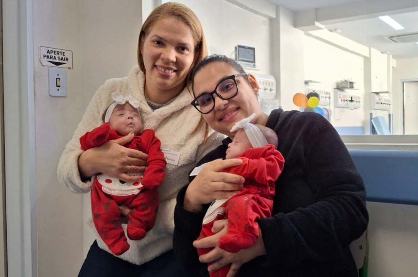 Foram dias de luta, esperança e cuidado constante. Myrella e Heloysa nasceram prematuras, de apenas 24 semanas, no dia 9 de junho. Desde o primeiro instante de vida, contaram com o olhar atento e a dedicação integral da equipe da UTI Neo-Natal do Hospital Nardini. Cada pequeno avanço foi celebrado, cada dificuldade enfrentada em conjunto — bebês, família e profissionais unidos pelo mesmo propósito: a vida.