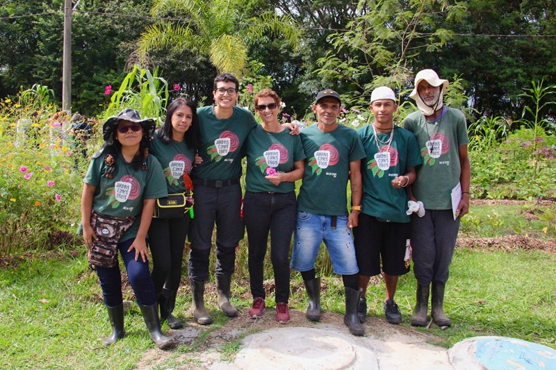 A instalação artística na natureza combina princípios agroflorestais para a produção de alimentos, além de promover atividades de mobilização comunitária e empreendedorismo social, com foco na geração de renda.