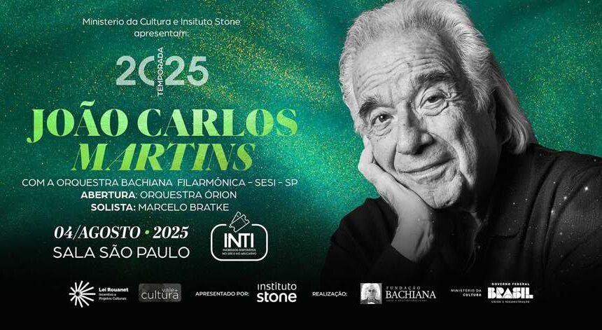O maestro João Carlos Martins e a Bachiana Filarmônica SESI-SP voltam à Sala São Paulo no dia 4 de agosto, às 20h30, para uma apresentação especial da Temporada 2025, realizada por meio das Leis de Incentivo à Cultura e apresentada pelo Ministério da Cultura e Instituto Stone. Os ingressos custam a partir de R$39,50 e já estão disponíveis na plataforma Inti. A apresentação contará com libras e audiodescrição, garantindo acessibilidade ao público.