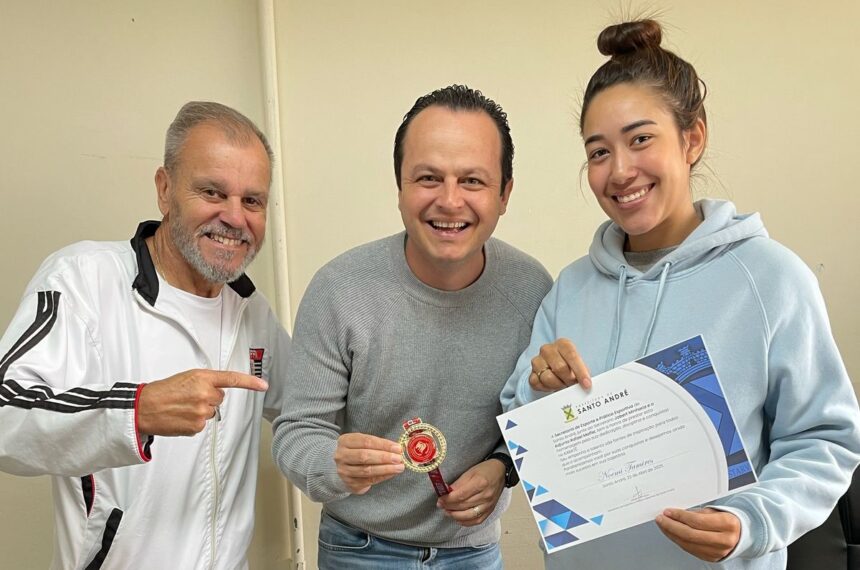 Após seu retorno para solo brasileiro, Noemi Tavares e o Sensei Almir Machado participaram de reunião com o Secretário de Esportes de Santo André, Professor Jobert Minhoca.