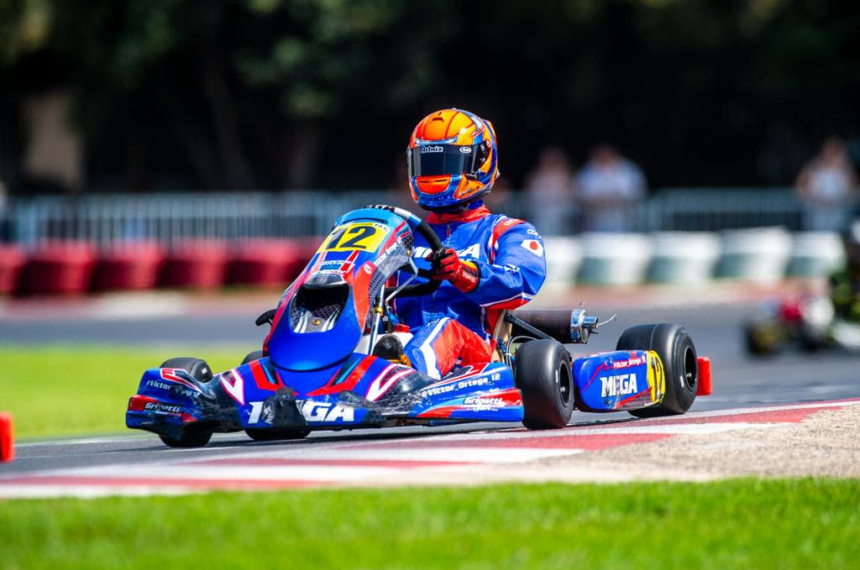 Victor Ortega estreou com força na F4 Novatos. O representante da Grigatti Karting recuperou diversas posições logo na primeira bateria, mostrando agressividade e controle absoluto no traçado paulista.