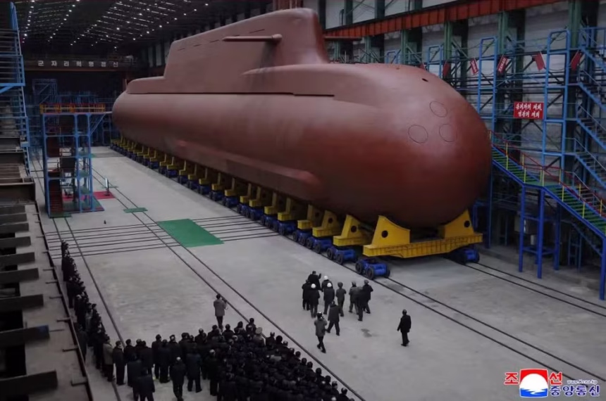 A KCNA também noticiou que Kim Jong Un visitou uma instalação industrial dedicada à construção de submarinos de propulsão nuclear. Imagens divulgadas pela mídia estatal mostram o líder ao lado de um submarino estimado em cerca de 8.700 toneladas, posicionado sobre uma plataforma coberta; ele esteve acompanhado por autoridades e pela filha, Kim Ju Ae, citada por analistas como possível sucessora.
