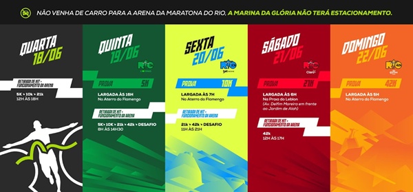 - Retirada de kits: De 18 a 21 de junho, na Marina da Glória (Casa Maratona)