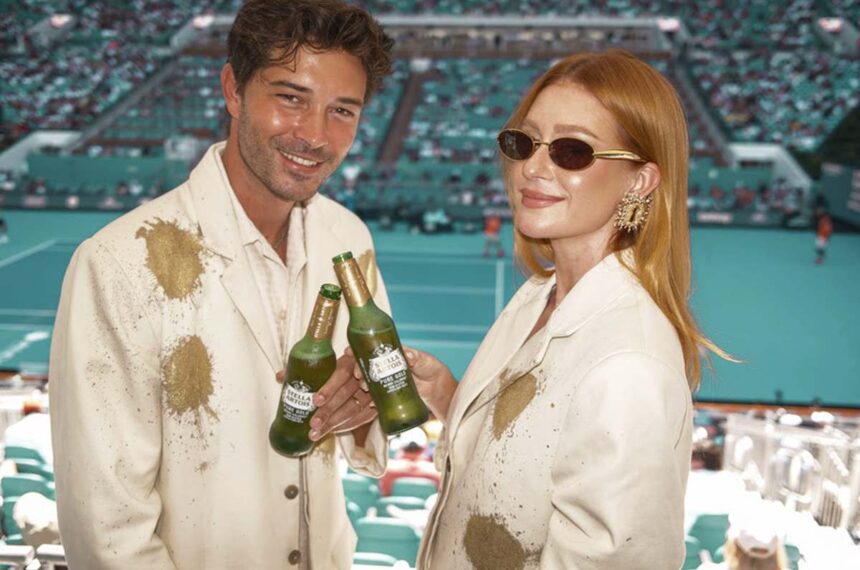 Marina Ruy Barbosa desembarcou em Miami e rapidamente chamou a atenção dos fãs e da imprensa. Com uma Stella Pure Gold na mão, a atriz aproveitou o Miami Open para brindar e celebrar ao lado do modelo Chico Lachowski.