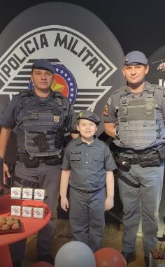 No último dia 8 de agosto, um menino de 9 anos, residente na cidade de Porto Ferreira, São Paulo, teve seu aniversário marcado por uma homenagem surpreendente que emocionou a todos os presentes. Apaixonado pela Polícia Militar, o aniversariante foi agraciado com a presença de policiais durante sua festa, onde a corporação se juntou à comemoração cantando os tradicionais “parabéns”.