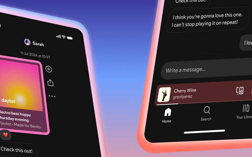 O Spotify passou a oferecer em agosto do ano passado uma ferramenta de mensagens integrada ao próprio aplicativo. O recurso permite que usuários conversem e compartilhem músicas e demais conteúdos de áudio sem sair da plataforma. Inicialmente voltado para conversas individuais, a funcionalidade ganhou uma atualização recente em janeiro e passou a incluir chats em grupo, reforçando a proposta de tornar a experiência no streaming mais social e interativa.