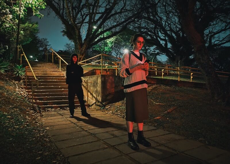 - “Atrás de Você” (2023): O filme acompanha Isabela, que, ao voltar para casa à noite, percebe estar sendo seguida por um homem. Ela tenta buscar ajuda por chamada de vídeo com uma amiga, mas a situação se torna perturbadora quando a amiga não consegue ver o perseguidor.