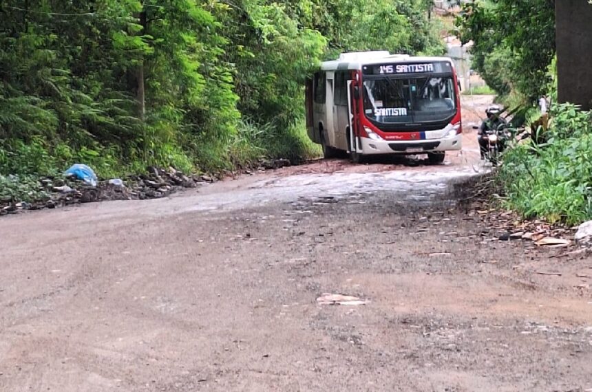 Ruas esburacadas e com lama tem dificultado a mobilidade de moradores e do transporte público na Estrada do Pilar, no bairro Recanto Vital Brasil.