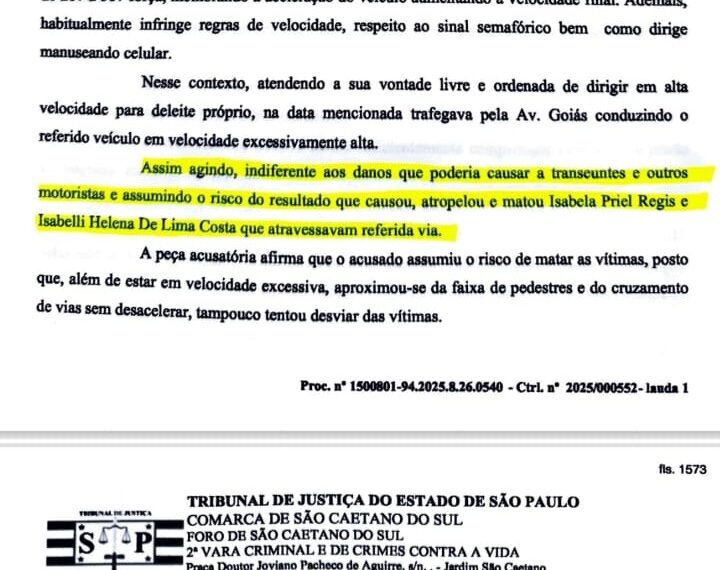 O caso do atropelamento das duas jovens, Isabelli Helena de Lima Costa e Isabela Priel Regis, ambas de 18 anos, e que perderam a vida na avenida Goiás, em São Caetano do Sul, no início do mês de abril, em virtude da imprudência do motorista do veículo Honda Civic, Brendo do Santos Sampaio, teve mais um desdobramento nos últimos dias e, desta vez, o juiz da 2ª Vara Criminal e de Crimes Contra a Vida de São Caetano do Sul, Dr. Pedro Corrêa Liao, determinou que o réu seja julgado por júri popular.