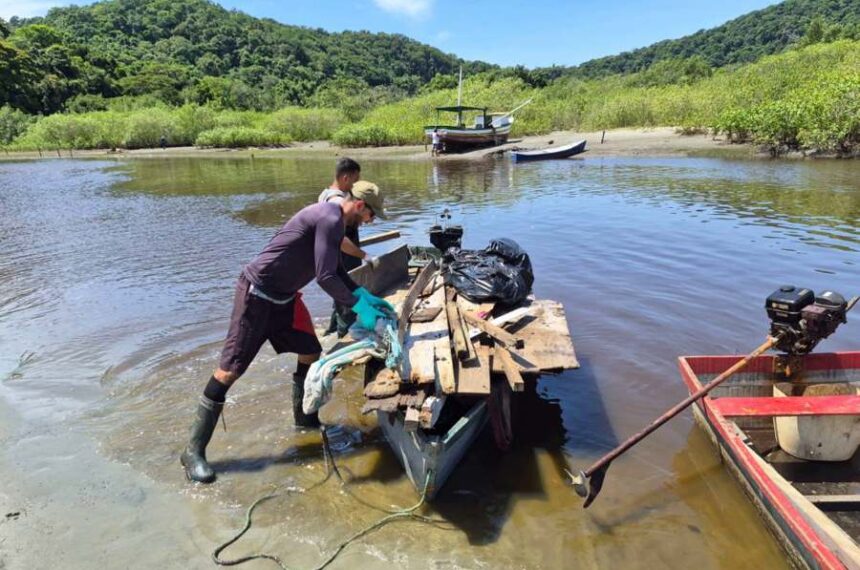 Pescadores artesanais participam de ação do Programa Mar Sem Lixo em Ubatuba e retiram mais de 1,3 tonelada de resíduos do manguezal